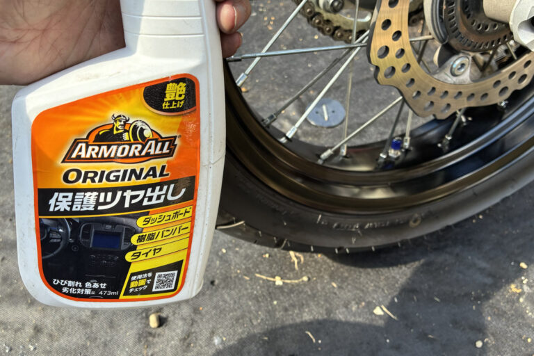 バイクのホイール磨きはアーマオールで決まり!チェーンオイル汚れも水なしで簡単除去
